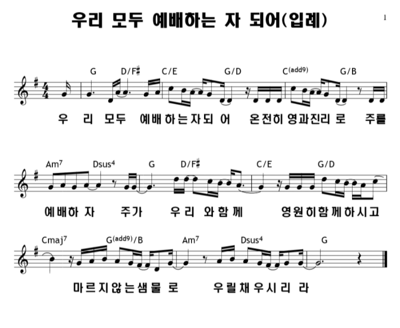 [CCM 찬양] 입례 G코드 (우리 모두 예배하는 자 되어)